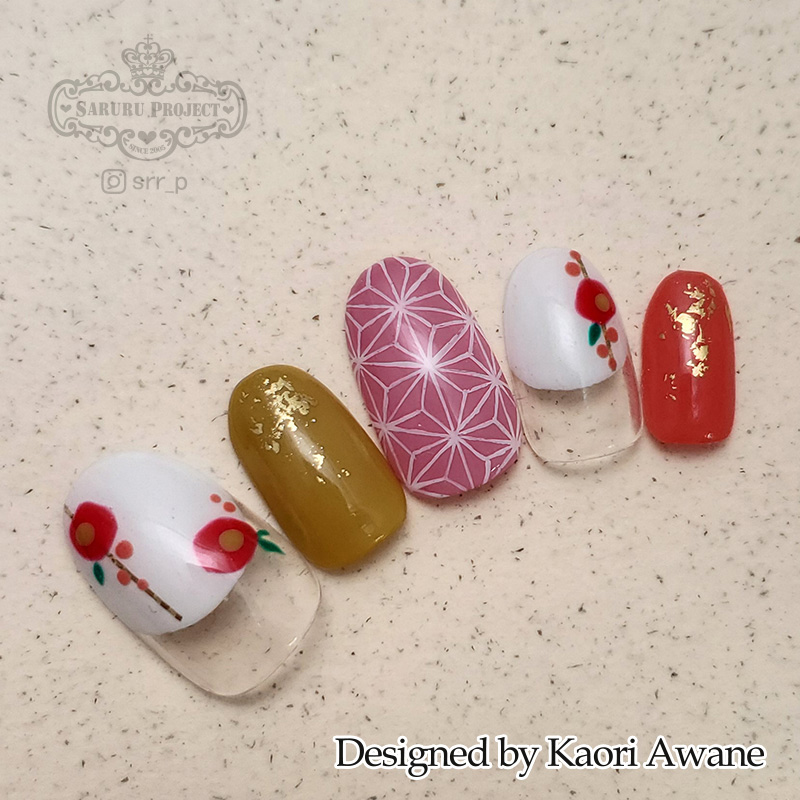 手描き麻の葉ネイル 寒椿