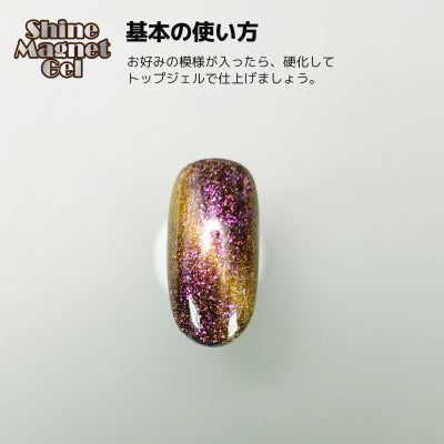 マグネットを当てます。シャインマグネットジェルは マグネットの動きがゆっくりなので 長めにマグネットをかざしてください。