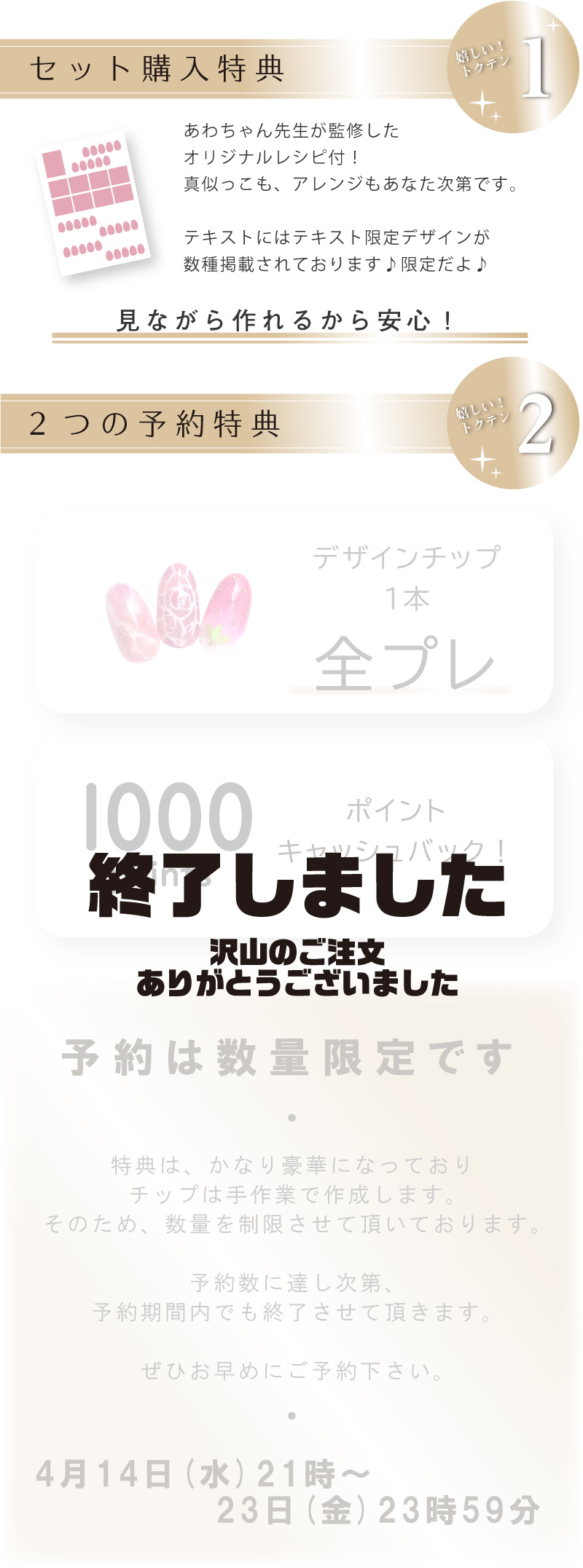 ※2021/4/18 多数の予約を頂戴しており、オリジナルネイルチッププレゼントの特典は、18日23時59分で締め切りさせて頂きます。