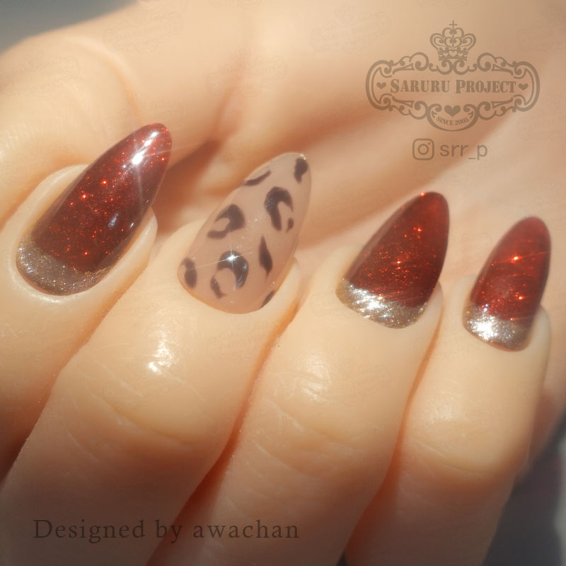 秋冬ヒョウ柄赤ラメネイル