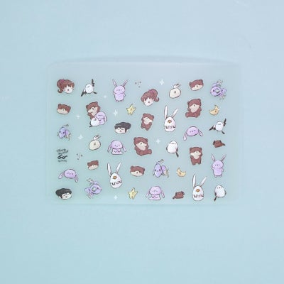 とっても薄い素材で爪にぴったり貼ることが出来ます! キャラの他に、星やにんじん・お花など隙間を埋められる柄もあるのが便利だなぁと思いました! あわちゃんねるのキャラが大好きで、4種✕3セット持ってます笑 ずっと販売してほしいし、また種類増やしてもらえたら嬉しい!! そして台紙の可愛さにも感動しました! 商品画像には写真がないので、初めて購入される方は届いてからのお楽しみ…笑